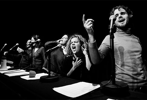 La pièce retrace l’épopée burlesque d’un homme ordinaire. Tout commence à la caisse d’un supermarché, lorsqu’un client se voit demander sa carte de fidélité. Il l’a oubliée dans un autre pantalon ; la caissière appelle le vigile, une altercation éclate. Dès lors, tout bascule : le personnage devient l’ennemi public numéro un et prend la fuite. Cet amour du grotesque, teinté d’un humour à la britannique, est le carburant de la compagnie L’Argument. Sur scène, la pièce prend la forme d’une fiction radiophonique, modulable et ouverte à l’imprévu. Inspirés par le style absurde et minimaliste de Fabcaro, les comédiens adoptent un jeu expressionniste, axé sur les postures et les décalages corporels. Passionnée par le son, la compagnie construit sa narration autour des bruitages, de la musique et du chant. À travers cette fuite surréaliste, c’est toute la mécanique d’une société en quête de boucs émissaires qui est passée au crible, entre parodie de film noir, pastiche médiatique et critique acerbe des dérives sécuritaires. Avec un humour burlesque assumé et une ironie mordante, la pièce dresse un portrait férocement drôle de nos obsessions contemporaines.