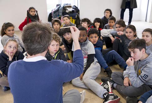 « Quel est votre livre préféré parmi les dix livres qui vous ont été présentés ? » interroge Olivier Richard, chargé de l’éducation artistique à la Maison des arts. Des mains se lèvent : C’est chic, La Nappe blanche, La Valise rose et Le Manège de petit Pierre sont les quatre titres les plus cités. Olivier Richard questionne ensuite l’assemblée sur les objets dont se servent les peintres, les sculpteurs, etc. Rares sont ceux, parmi les 25 enfants présents, à ne pas vouloir prendre la parole.