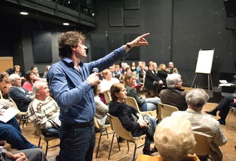 « La présence d’un escalier induit un élément de contrainte naturel pour le futur aménagement, explique Catherine Tricot, par exemple. La place n’est pas plane, le dénivelé imposera des choix. » Dans la salle, les échanges sont animés, l’assistance plutôt conservatrice : les habitants acceptent de déplacer des choses, mais ils souhaitent garder la plupart des équipements déjà existants.